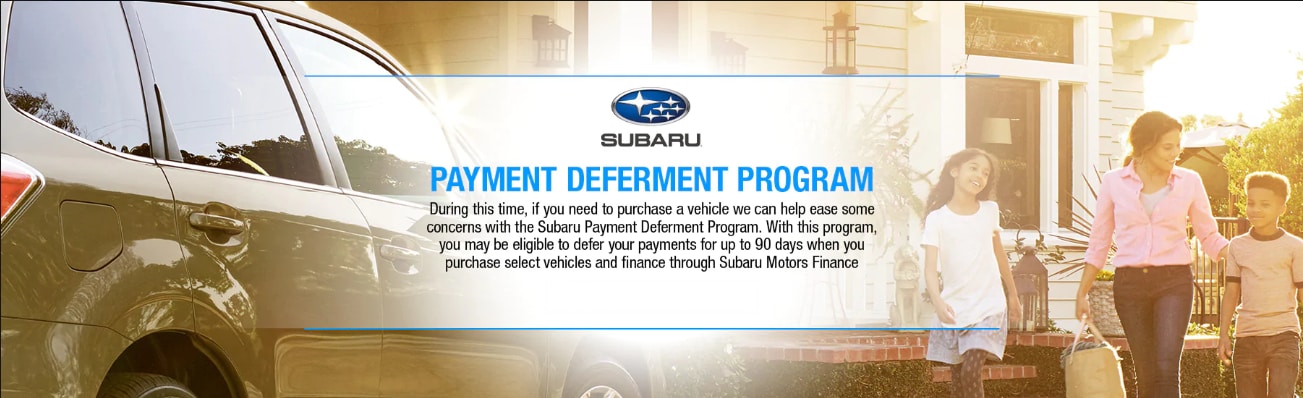 During this time, if you need to purchase a vehicle we can help ease some concerns with the Subaru Payment Deferment Program[1]. With this program, you may be eligible to defer your payments for up to 90 days when you purchase select vehicles and finance through Subaru Motors Finance[2].